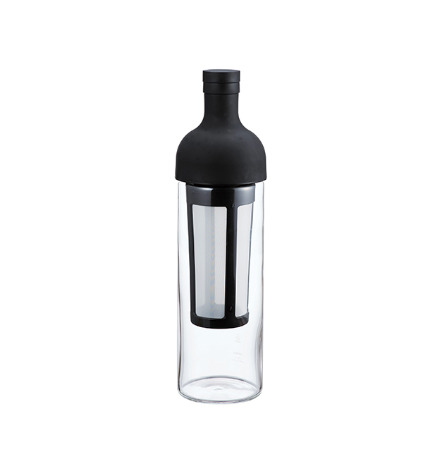 酒瓶造型的冷萃咖啡壶,仅咖啡粉+冷水即可做出冰咖啡。将咖啡粉放入滤网,盖好盖子并置于壶口,分次缓缓注水;注满后冷藏约8小时即成,期间可轻晃瓶身加速萃取。