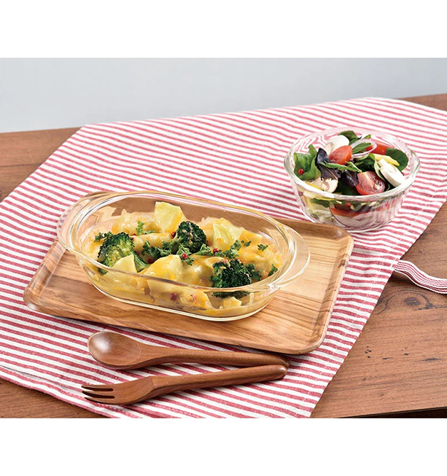 满水容量600 mL 的焗烤盘,市售焗烤酱一人份外加蔬菜等配料也能轻松容纳;菜肴甜点皆相宜。可进微波炉、烤箱与洗碗机 。